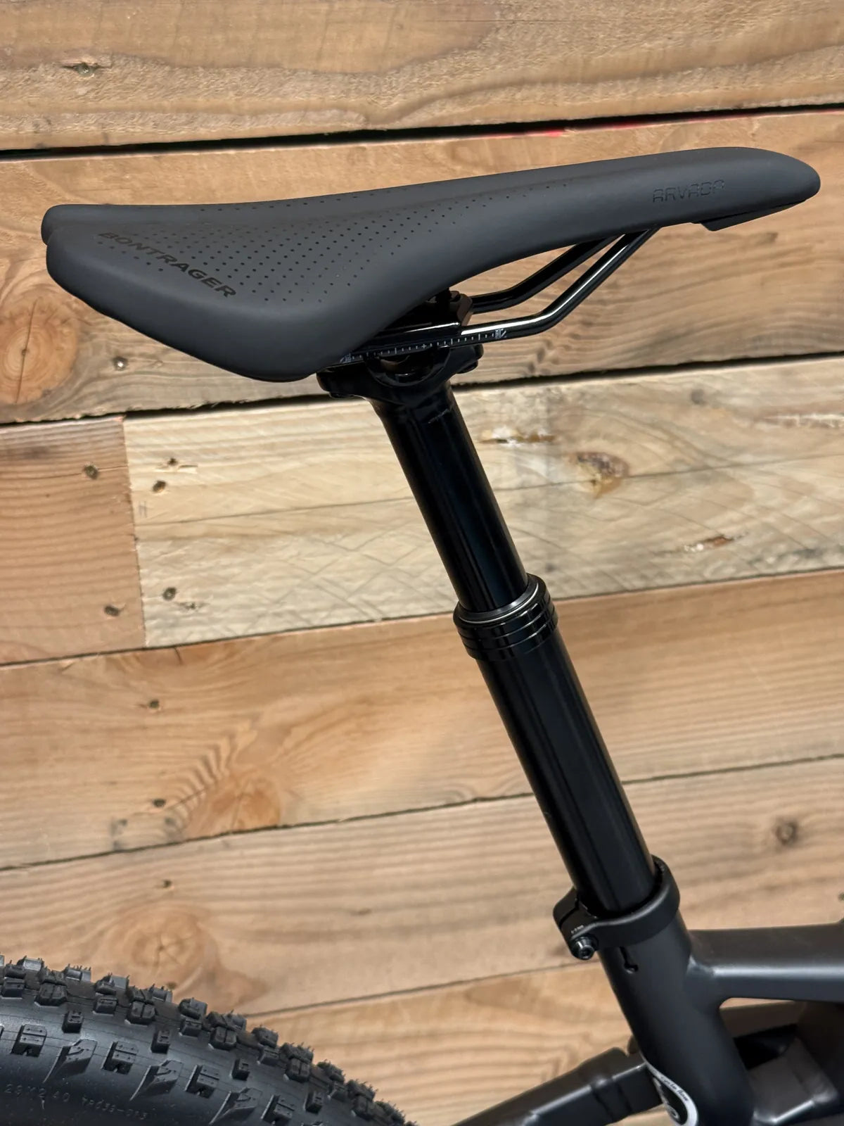 - Sattel / Sattelstütze: Bontrager, 100 mm Hub, interne Zugführung